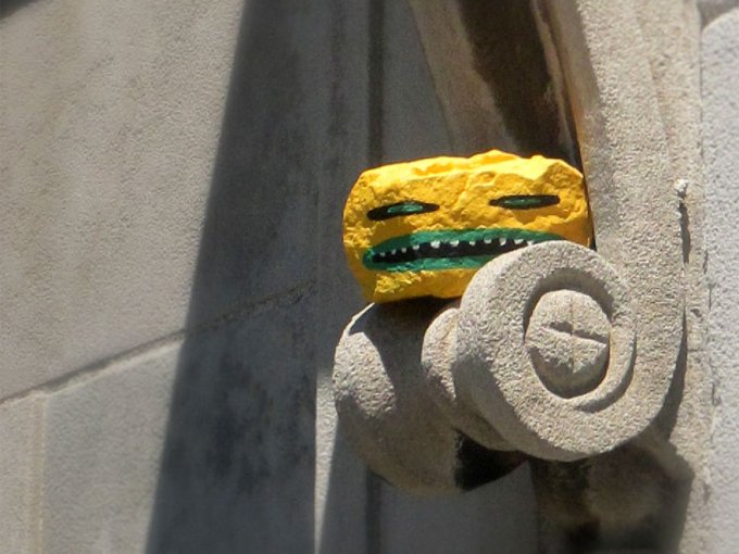 Non solo, ognuno di questi sassi è stato dipinto con il suo clone perfetto e la metà di essi sono esposti al Children’s Museum, in cui i bambini possono scovarli tutti, in una sorta di Pokemon Go della vita vera. Niente male.