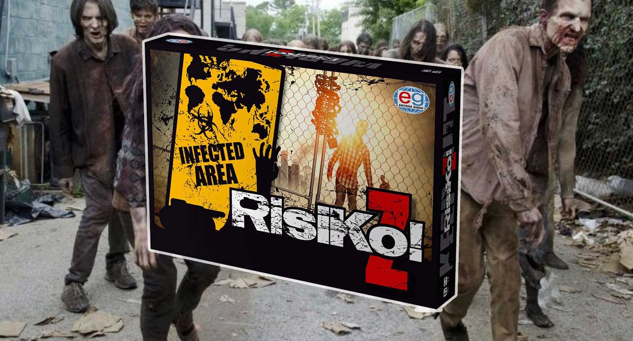 In caso vogliate giocare all’epidemia dei morti viventi, dopo aver piazzato le vostre armate piazzerete 2 armate zombie (carrarmatini di color marcio) in 20 territori scelti a caso e dopo la fine di ogni turno, il giocatore che ha conquistato almeno un territorio potrà tentare di bonificare i suoi territori dall’epidemia, quello che invece non ha pescato niente dovrà difendersi. Quando gli zombie conquistano un intero territorio, spargono l’epidemia nei territori confinanti, con conseguente paura e voglia di resistenza. Il primo giocatore eliminato sarà quello che giocherà tutte le armate zombie e allora i superstiti dovranno soprattutto tentare di debellare la piaga, prima di dedicarsi ai propri obiettivi. Il primo che toglie tutte le armate zombie dal cartellone vice, anche se non ha conquistato gli obiettivi descritti sulla sua carta.