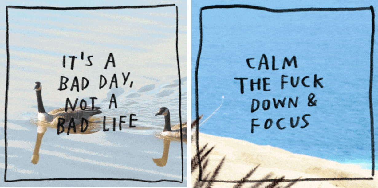 Per i mantra contenuti nelle gif, ha chiesto aiuto ai suoi follower facendo un sondaggio su Twitter. Qualcuna funziona di più, altre di meno. Dopo tutto, quando si tratta di motivarsi, ognuno ha i suoi metodi.