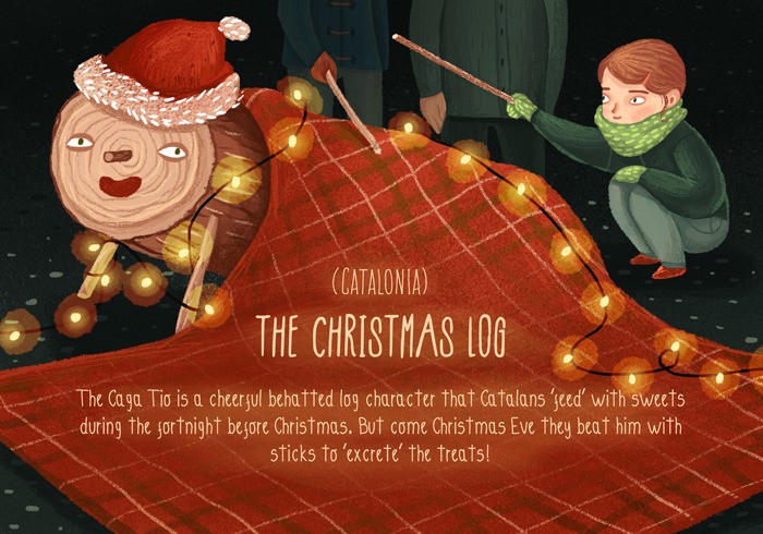 Il Caga Tio è un ceppo di ciliegio a cui i catalani “danno da mangiare” dolciumi vari la notte prima di Natale. La notte seguente invece lo battono con dei legnetti per fargli espellere i doni.