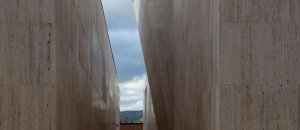 Calcestruzzo armato e travertino sono il silenzio tombale fattosi muro senza lapidi, un muro che ha inghiottito gli ultimi residui viventi: i fiori, le foto, gli epitaffi. Alla vista appaiono come blocchi geometrici con squarci laterali o aperti in alto, per creare visioni del paesaggio o del cielo.
