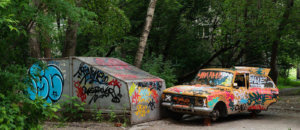 In molti cortili russi ci sono le auto in disfacimento, ormai inutilizzate dai loro possessori. In questo modo, grazie al lavoro di Stenograffia, i rottami diventano vere e proprie opere d’arte.