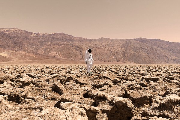 Con il ritorno sulla Terra di Samanta Cristoforetti, il tema dell’uomo nello spazio è di grande attualità. In questa serie fotografica del parigino Julian Mauve, ad esempio, la narrazione è semplice quanto stupefacente: un astronauta in visita di piacere su Marte.