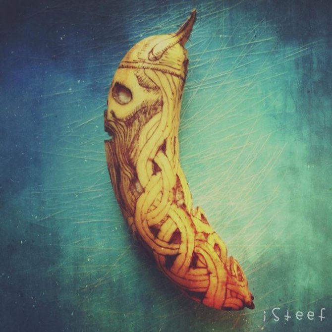 Effimere quanto viscide, le banane non sembrano una grande base di partenza per opere d’arte, ma guardate un po’ cosa riesce a combinare Brusche con l’unico frutto dell’amor. Potete provarci anche a casa, chissà che non vi scopriate degli abili incisori.