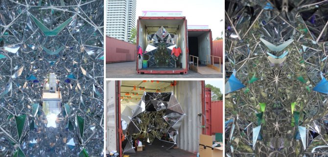 L’opera si chiama “Wink Space” e stare in piedi in mezzo a tutti questi specchi è un po’ come camminare all’interno di un gigantesco caleidoscopio. Un’esperienza psichedelica.