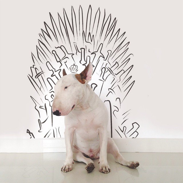 Quando l’illustratore brasiliano Rafael Mantesso ha divorziato dalla ex moglie, lei gli ha lasciato un appartamento bianco senza mobili e il cane, bull terrier di nome Jimmy Choo. Il simpatico cane è diventato la musa di Mantesso. Rafael ha iniziato a disegnare intorno a lui, usandolo come protagonista delle sue creazioni. È bastato il comando “stay!” e Jimmy ha posato come solo un modello saprebbe fare, dimostrando, neanche ce ne fosse bisogno, che il cane può essere davvero il miglior amico dell’uomo e che i bull terrier non sono certo bestie sanguinarie e assassine, basta educare il proprietario del cane, ancor prima dell’animale, ad essere responsabile. Questa galleria parla da sola: