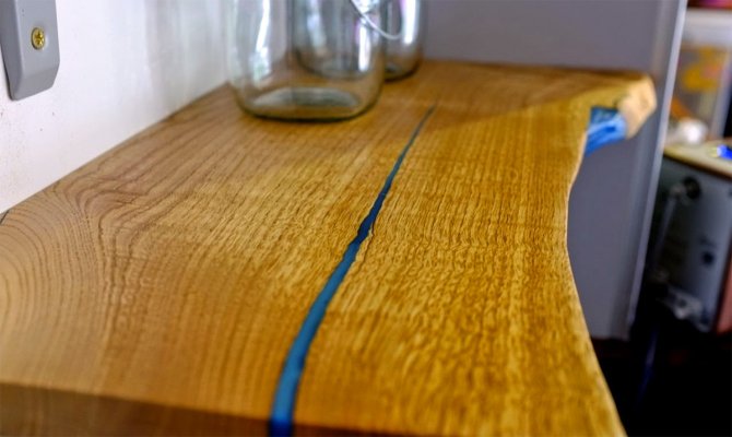 Il designer inglese Mat Brown ha pochi giorni fa condiviso su Reddit un’ingegnosa idea per costruire delle mensole che hanno delle parti luminescenti, visibili al buio. Partendo da delle tavole di legno con delle grosse crepe, ha mescolato dei pigmenti speciali, che sono dotati di una propria luminescenza, con delle comuni resine e con questo impasto di resina e colori ha riempito i buchi del legno.