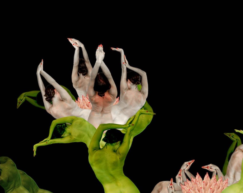 Le sue opere, costruite digitalmente, paiono come piccole parti di un puzzle che riproducono, con cura scientifica, le silhouette e i colori della natura attraverso le pose di corpi nudi femminili.