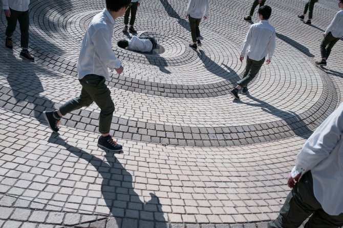 Takakura era curioso di capire che tipo di mondo sarebbe se ci fossero molti sé singolari, tutti insieme nello stesso spazio. Così, attraverso la passione per il teatro e un lavoro di progettazione grafica, ha creato un’inquietante e bellissima serie di fotografie che ti fa interrogare sull’esistenza umana e su cosa significhi essere il tuo sé autentico.