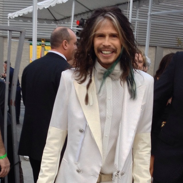 Finisco la sigaretta e quasi mi scontro con Steven Tyler, che invece di fare la star e incazzarsi mi sorride mi mette una mano sulla spalla e mi dice “I love you man” io lo guardo un po’ cosi e penso ma “cazzomenefrega!” e gli rispondo ” I love you too man”. Beh, dopo due “I love you” e mezza sigaretta fumata con lui, la tremarella mi passa e parlo con lui 10 minuti in mezzo al delirio delle persone che lo chiamano. Alla fine gli chiedo se posso fargli una foto: “no problem dude what you think i look good?” e si mette in posa. Inutile dire che per me ha vinto lui il mio personale premio simpatia.