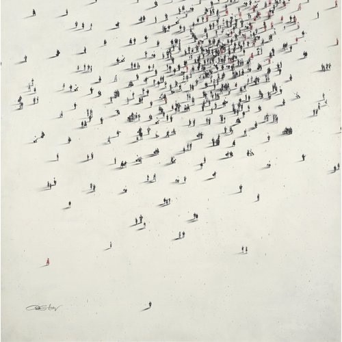 Craig Alan è un artista Californiano, classe 1971, che dipinge piccole figure umane viste dall’alto, come se un aereo volasse a bassa quota su una pianura innevata e le persone si disponessero per formare una figura, come i pixel di un’immagine.