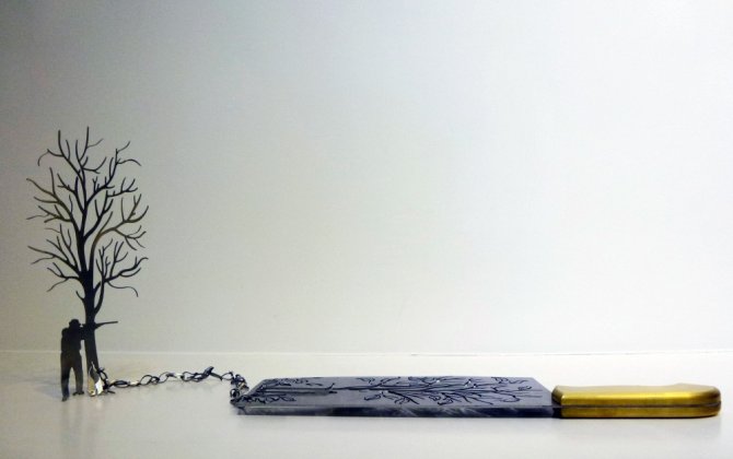 L’artista Li Hongbo ha recentemente realizzato sculture visibili in silhouette, utilizzando dei coltellacci da macellaio. Ha intagliato animali e scene di caccia in ogni pezzo con fine maestria, in modo che la scultura vera e propria lasci nel coltello la propria controparte in negativo. Una provocazione che ha radici ben salde.