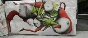 Il primo muro lo dipinsi nei vecchi capannoni del carnevale di Viareggio nel ’92 o ’93, una vera cagata… Adesso sono a Capoverde, Isola di Maio, e ho dipinto un pezzo dedicato alla salvaguardia della natura e cultura.