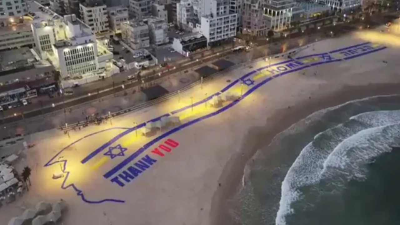 Il video della scritta per Trump sulla spiaggia a Tel Aviv