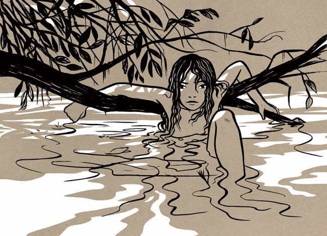 La bellissima serigrafia “Sul fiume” di Alessandro Baronciani.