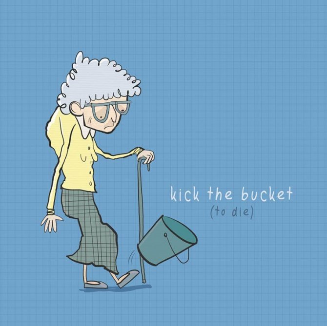 Kick the bucket. Traduzione letterale: Calciare il secchio. Significato: Morire.