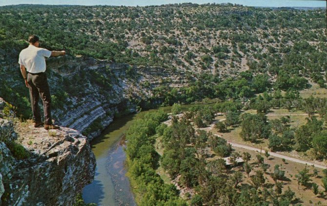 Ora pensate agli anni ’50 negli Stati Uniti e alla moda del tutto opinabile di mostrare sulle cartoline i luoghi caratteristici con delle persone, spesso vestite di rosso, fotografate di spalle mentre osservano un punto nascosto, che non ci è dato vedere. Alcune delle immagini che vi stiamo per mostrare sembra provengano direttamente da un film di Alfred Hitchcock, in cui la suspense è palpabile, oppure dalle pose surreali e sinistre dei film di David Lynch. Senza dimenticare la scena finale di “BlairWitch Project”.