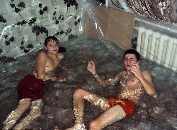 Sarà colpa del fatto che non possano permettersi le vacanze al mare, fatto sta che questi due geni incompresi (provenienti dalla ridente città di Oryol, in Russia) l’hanno fatta grossa: dopo aver impacchettato i mobili con dei teli di nylon, hanno dato il via ai rubinetti, col discutibile risultato di trasformare il loro appartamento in una piscina, allagandolo. Le foto sono ok, ma poi cos’è successo?
