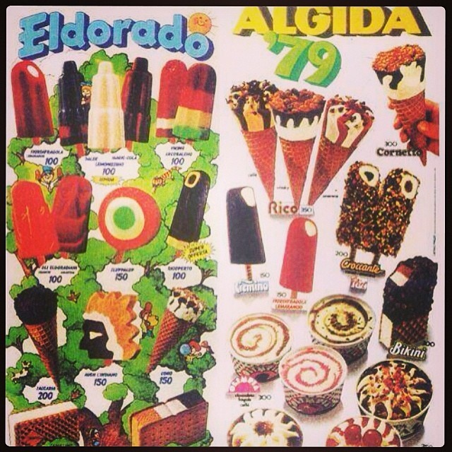Quei colori sgargianti dai quali eri rapito come le farfalle delle lampadine, senza darti pensiero dei coloranti o dei chili di troppo perché eri piccolo e dovevi solo crescere, giocare, sentirti coccolato e stare bene? Ti ricordi delle estati passate coi pantaloncini corti, coi sandalini di gomma e con un gelato sempre in mano? Io sì, ed è strano quanto certi ricordi subaffittino parti della mente e restino come cellule dormienti per decenni, finché ti trovi perso in una ricerca Google a guardare un’immagine che senti tua come una foto di famiglia e in un momento tutto il dimenticato riaffiora. Questa qua sotto:
