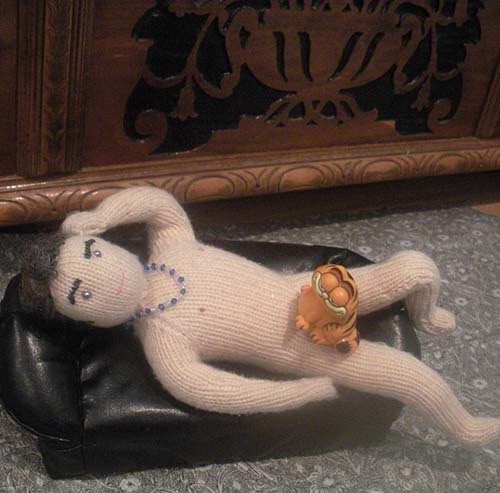 Totalmente nudo e un tantino imbarazzante mentre gioca col gatto Garfield: