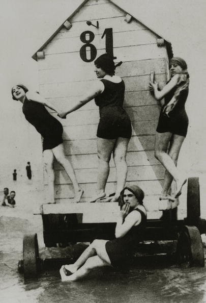 Ombrellini parasole, gonne a balze, cuffiette per lei, pantaloncini corti e canotta per lui, con gli immancabili baci a manubrio tanto in voga oggi. Si cambiavano nelle apposite cabine da bagno, con le ruote, direttamente in acqua, in modo da stare a riparo dagli occhi indiscreti e poi via, a tuffarsi tra le onde.