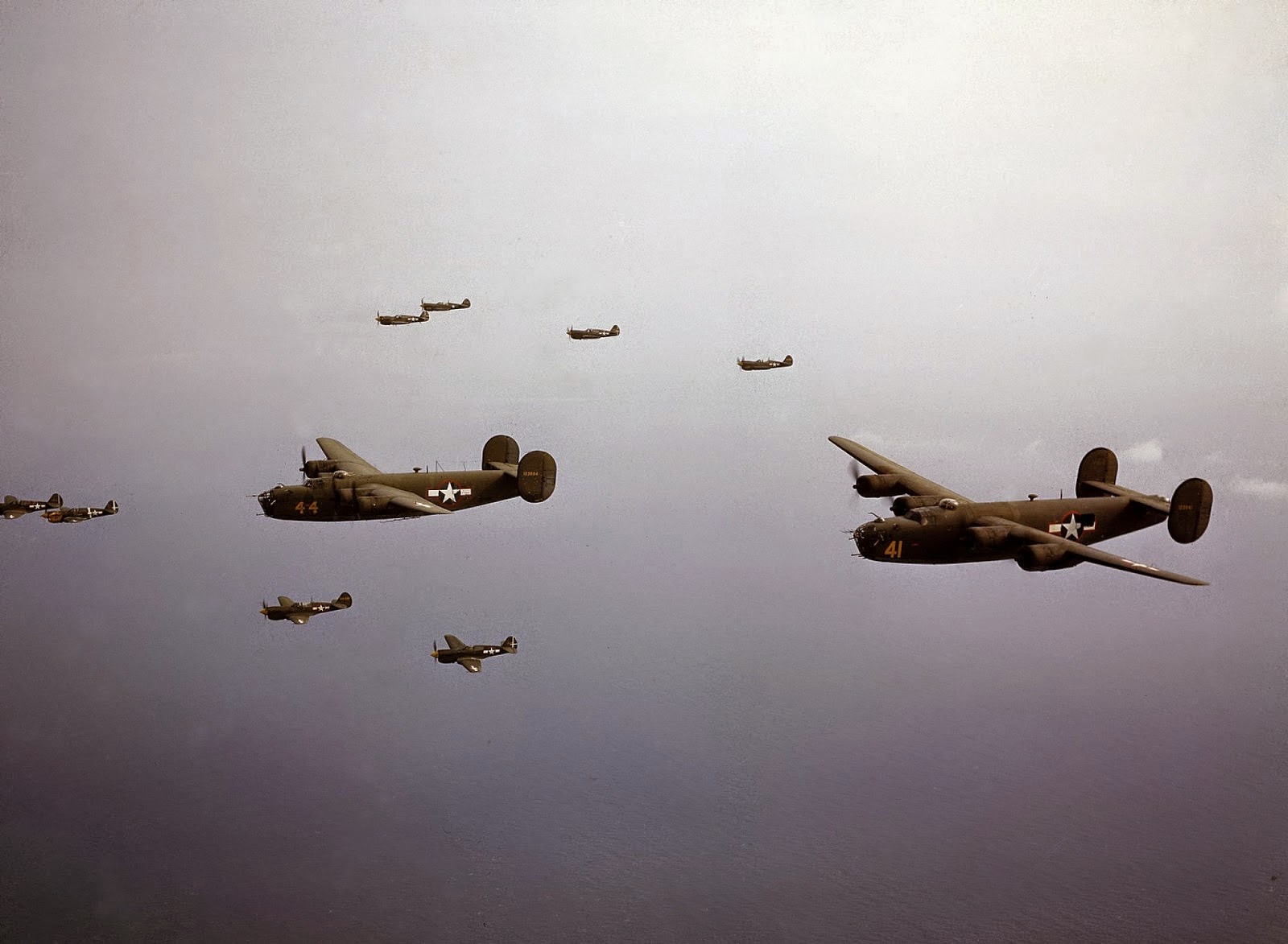 Un gruppo di Curtiss P-40 scorta i B-24D in volo sull’Alaska, 1944