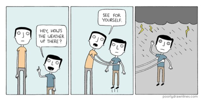 Ah la famosa battuta “che tempo fa lassù”, che ridere guarda.