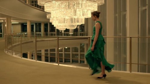 Vediamo così Qualley, che impersona una giovane dell’alta borghesia fasciata in un bellissimo abito lungo verde smeraldo, allontanarsi da una cerimonia e dopo aver sgranato gli occhi e digrignato i denti, mettersi a ballare indemoniata, e muoversi saltellando ovunque sulle note di Mutant Brain, pezzo composto appositamente per lo spot da Sam Spiegel & Ape Drums feat. Assassin .