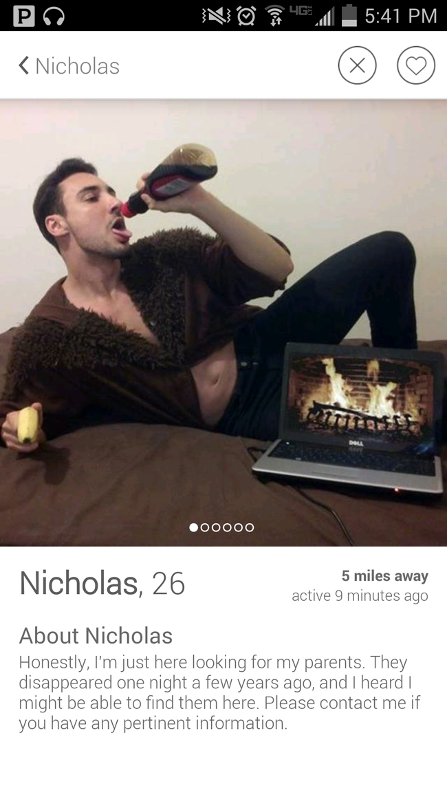 “Sposato. Due bambini. Cerco qualche avventura extra. Dai scherzo. Single. 3 Tamagotchi. Cerco qualcuno da portare agli eventi in famiglia così la smetteranno di pensare che c’è qualcosa di sbagliato in me.”