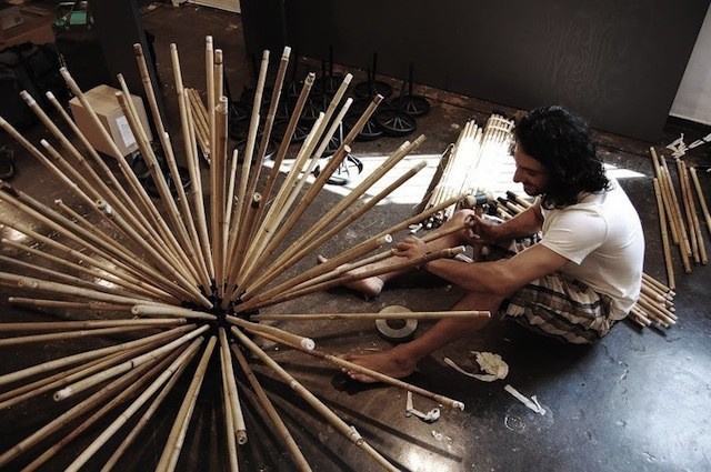 La palla è costruita con 70 bastoni di bamboo e altrettante piastre rotonde ed è dotata di un gps per permettere di tracciare la posizione delle mine trovate.