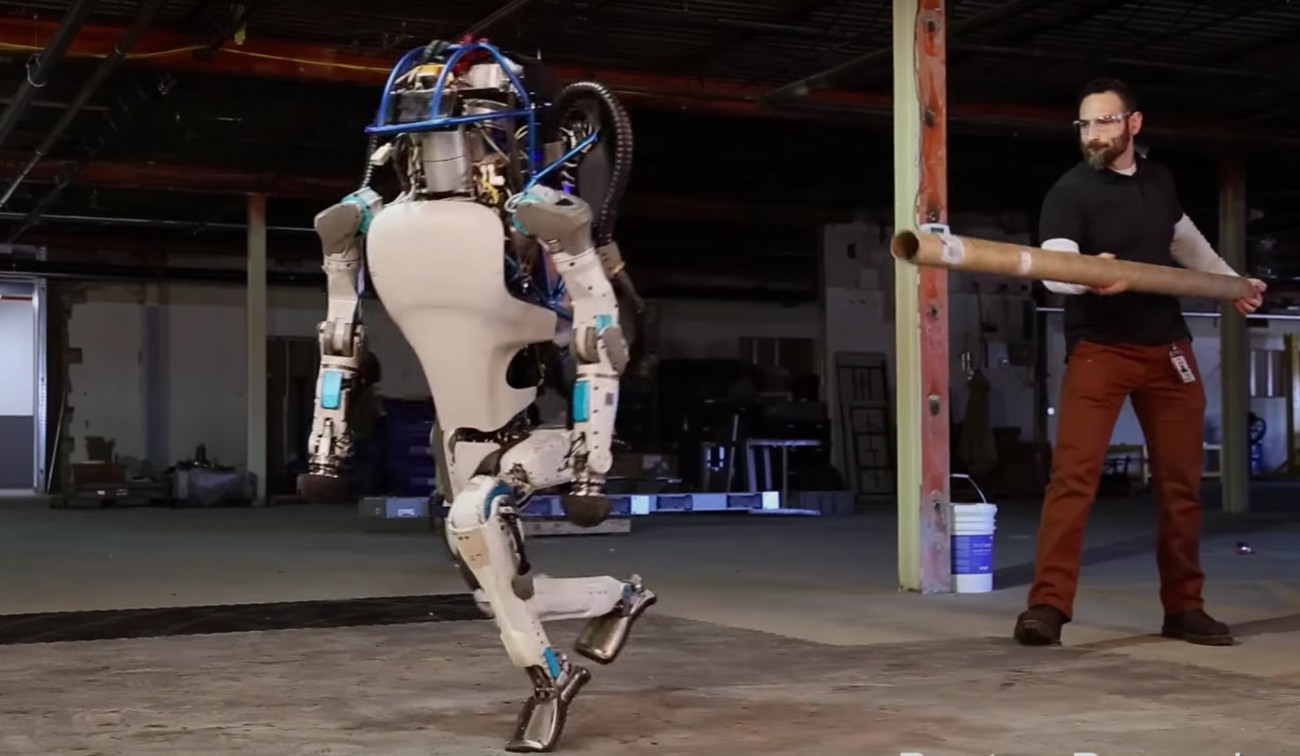 Nel video – diffuso qualche ora – fa vediamo la nuova generazione di Atlas insieme ai suoi colleghi muoversi in favore di camera, poi camminare sereno nella neve, poi muoversi in un capannone e sollevare – con qualche incertezza – pacchi del peso di 10 libbre, più o meno 4,5 kg – e infine rialzarsi dopo essere stato abbattuto a bastonate da un essere umano. I ronzii dei circuiti di Atlas cambiano leggermente, e la macchina sembra riflettere sul da farsi, pensando “Ok, e adesso come faccio a tirarmi su?”. In pochi secondi, capisce come fare.