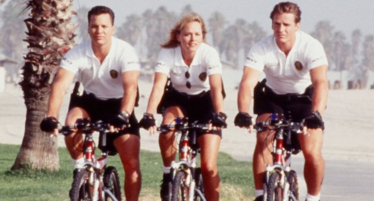 Ora, senza nulla togliere alla bellezza della topografia di Santa Monica (spiagge spaziali e enormi vialoni) ci si domanda quale idea malsana sia passati agli sceneggiatori quando hanno pensato di mettere al centro dell’azione una squadra di agenti in bicicletta? Piccolo esempio facile facile. Vera e propria quintessenza delle serie TV con le Forze dell’Ordine sono gli inseguimenti. Ma inseguimenti in macchina, magari auto della polizia o anche auto sportive: non si è mai sentito di eccitanti inseguimenti in mountain bike. Gli sforzi di trama per far sì che i delinquenti fossero o anche loro su due ruote o comunque appiedati o sui pattini erano talmente evidenti da non far smuovere neanche una risata di scherno.