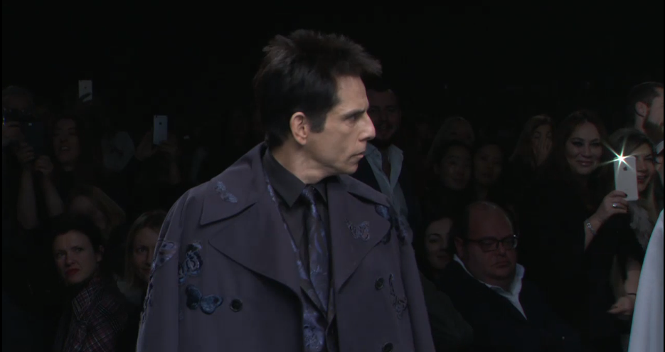 Sbucano dal buio Ben Stiller ed il suo fido amico-nemico Owen Wilson, entrambi nei rispettivi panni dei top model Derek Zoolander e Hansel McDonald del celebre film di Stiller del 2001, diventato di culto per intelligenza ed acume comico, ma anche come satira del mondo patinato della moda, imitato un po’ da tutti (l’ultima parodia proprio pochi giorni fa, nel talk show di Alessandro Cattelan con protagonisti Luca Argentero e Fedez)