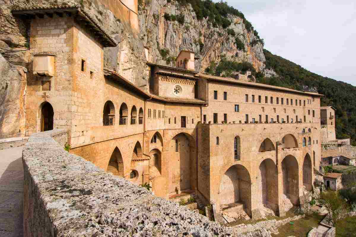 Il Monastero di San Benedetto, noto anche come Sacro Speco, è un capolavoro architettonico letteralmente incastonato nella montagna. Le sue sale, le scale e le terrazze si affacciano su panorami mozzafiato, mentre gli affreschi medievali raccontano storie di fede e di arte che resistono da secoli.