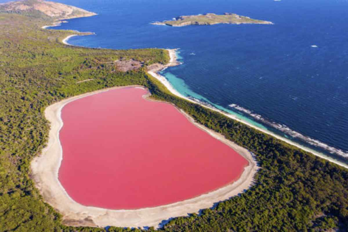 Con una lunghezza di circa 600 metri e una larghezza di 250 metri, il lago Hillier è celebre per il suo colore rosa permanente che non cambia nemmeno quando l’acqua viene prelevata e analizzata in contenitori. Questo fenomeno è principalmente attribuito alla presenza della micro-alga verde salina Dunaliella salina e di particolari specie di alobatteri, che prosperano nelle acque estremamente salate del lago. La concentrazione di sale, simile a quella del Mar Morto, crea un ambiente ideale per queste forme di vita microscopiche, responsabili della sorprendente tonalità.
