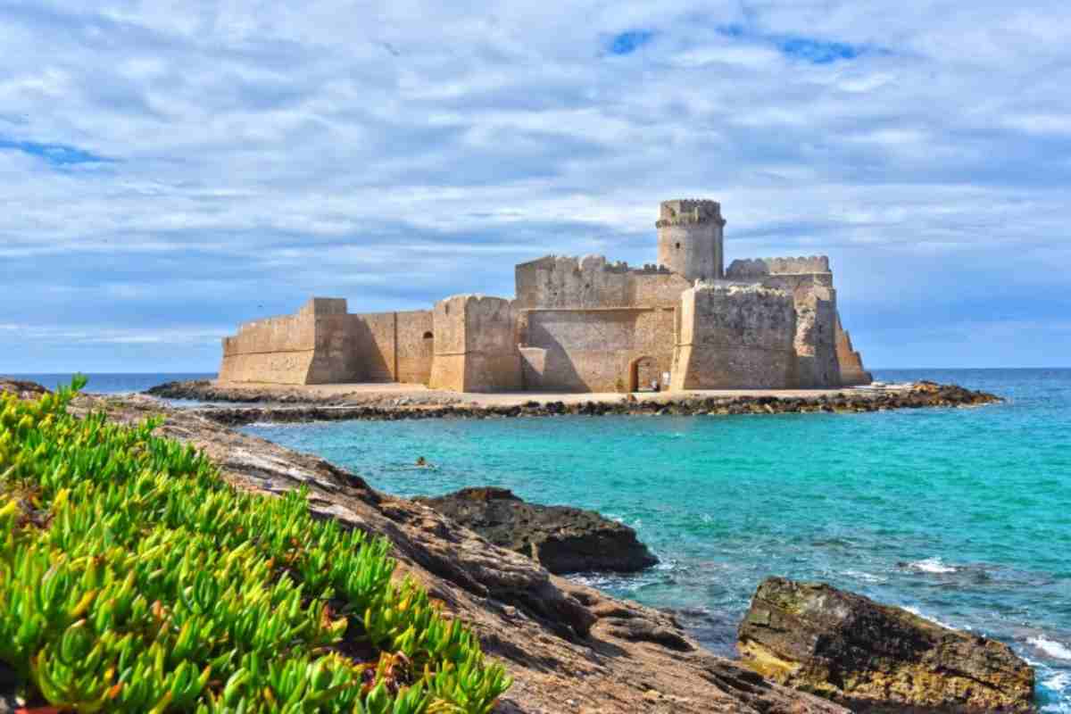 All’estremo opposto della regione, nella Calabria ionica, sorge la suggestiva fortezza aragonese di Le Castella sull’omonimo isolotto collegato alla terraferma da una sottile lingua di terra. Questa costruzione medievale, immersa nella Riserva Marina di Capo Rizzuto, si presenta come un set naturale per appassionati di storia e natura, con fondali marini tra i più ricchi del Mediterraneo, ideali per snorkeling e immersioni subacquee.