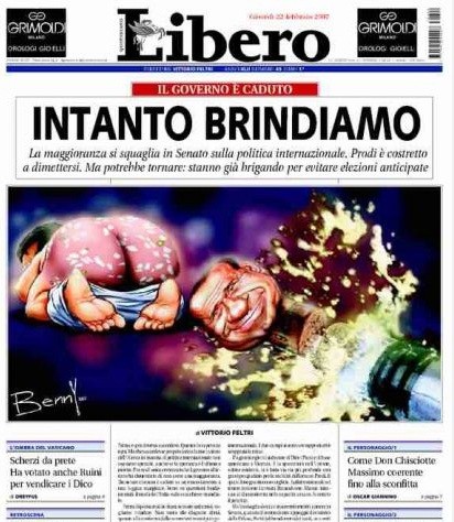 O della vignetta di Benny con Berlusconi-tappo-di-champagne che vola verso il centro delle terga di mortadella di Romano Prodi? Macché, magari. È molto, molto peggio.